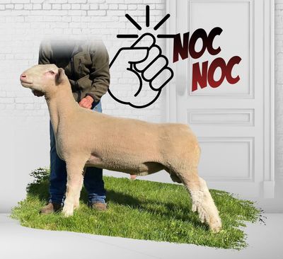 No he isn't a wether sire, and obviously he isn't a frame sheep. This guy is the key to making slick shorn BREEDING sheep. Good in his lines and great on his feet and legs. He is the perfect complement to our "production first" ewe base.